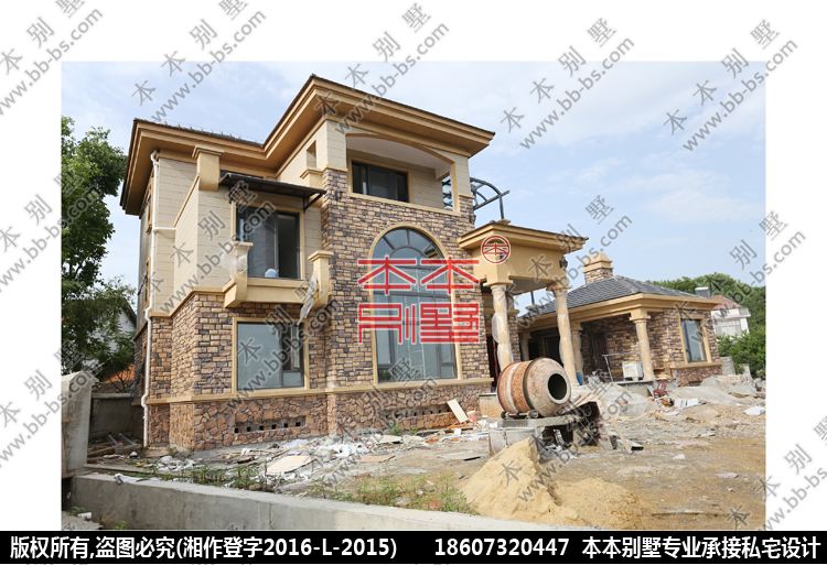 (注:先是謝謝劉總的信任,設計交給本本別墅,外裝材料也交給本本提供:瓦、文化石、歐式構件、外墻磚、真石漆)