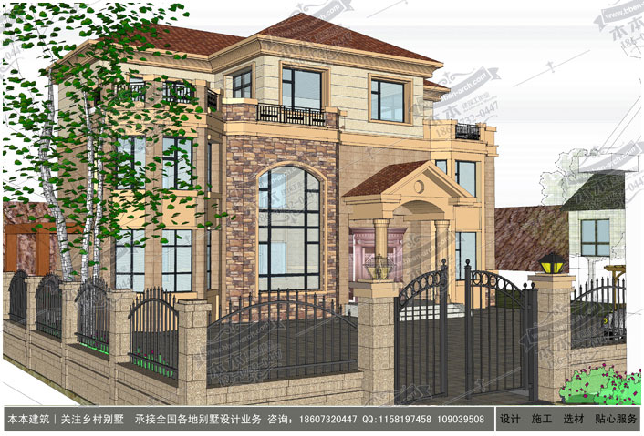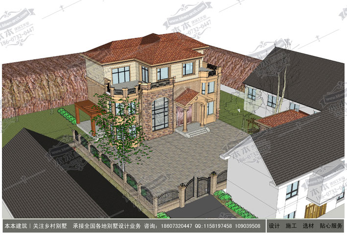 左邊是鄰居的一層,右邊是鄰居的兩層,基本擋住了業(yè)主的一層.為了突顯房子的氣勢(shì),我們建議業(yè)主在預(yù)算范圍內(nèi)建三層.視覺(jué)上更加突顯房子的大氣.