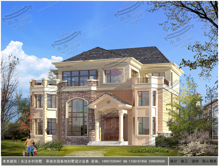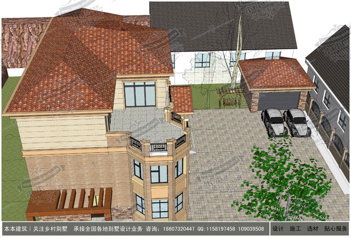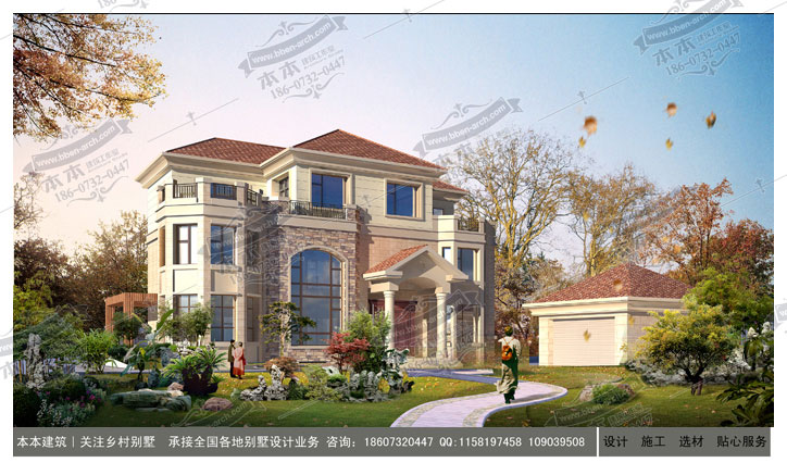 鄉(xiāng)村自建三層帶露臺(tái)_獨(dú)立車(chē)庫(kù)小別墅設(shè)計(jì)