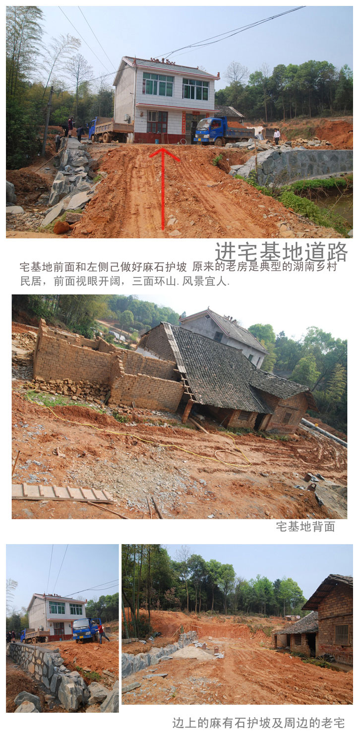 我們從圖中可以看到.宅基地位置相當(dāng)好.入戶有一點點高差,宅基地比周邊的道路高出約1.2~1.5M.業(yè)主己在兩側(cè)做好了麻石護(hù)坡.
