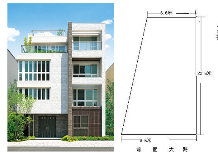 業(yè)主給了我們一張參考圖片:左邊是想要的效果,右側是宅基地的現(xiàn)狀圖紙。