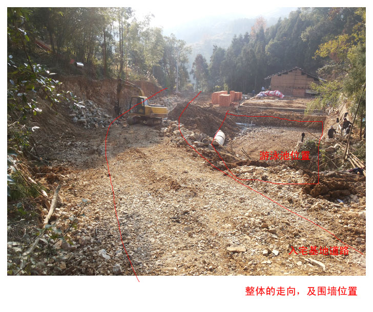 整體的路網(wǎng)規(guī)劃,宅基地的位置,配套設(shè)施的擺放,以及與老宅的關(guān)系一目了然。宅基地內(nèi)自然植被豐富,山體的地基也相當(dāng)好,裙山環(huán)抱下,宅基地內(nèi)的光線相當(dāng)好。