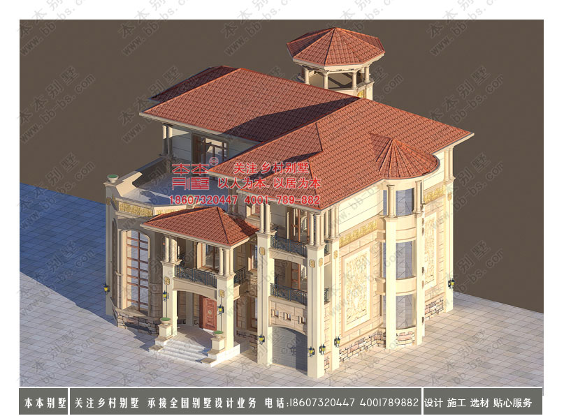 歐式三層大氣別墅效果圖帶實(shí)景帶車庫復(fù)式挑空別墅